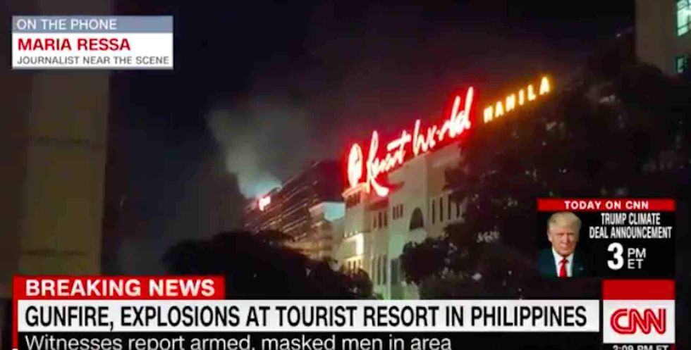 At least 25 people were injured Friday after multiple masked individuals entered a resort complex in Philippines. (Image source: CNN screenshot)