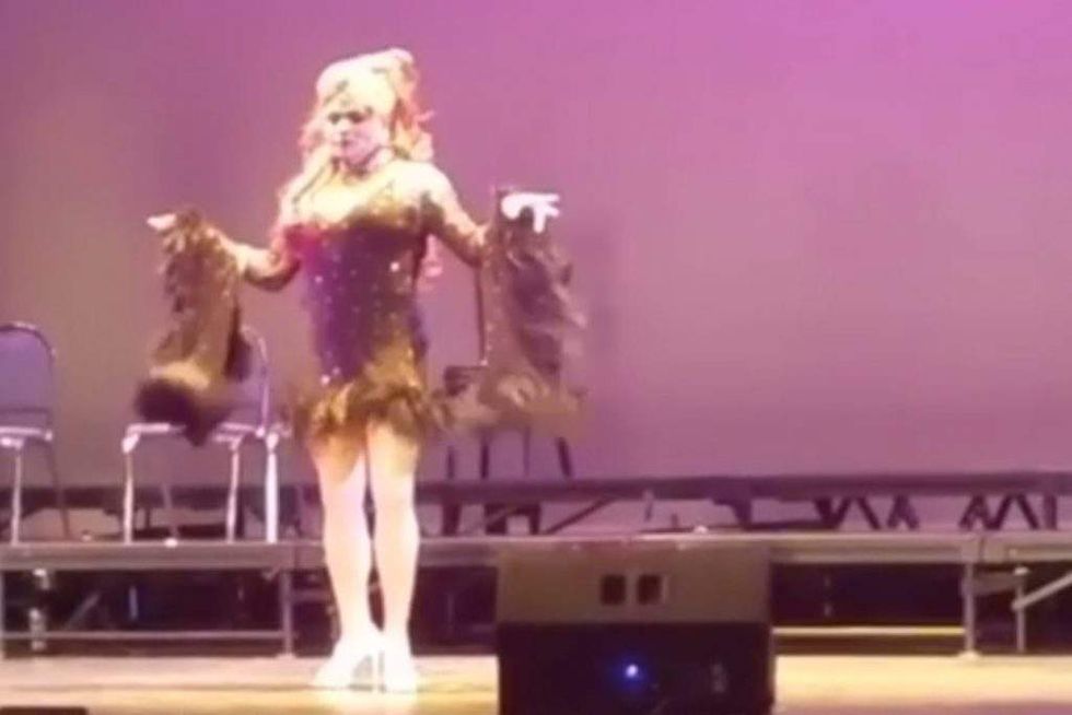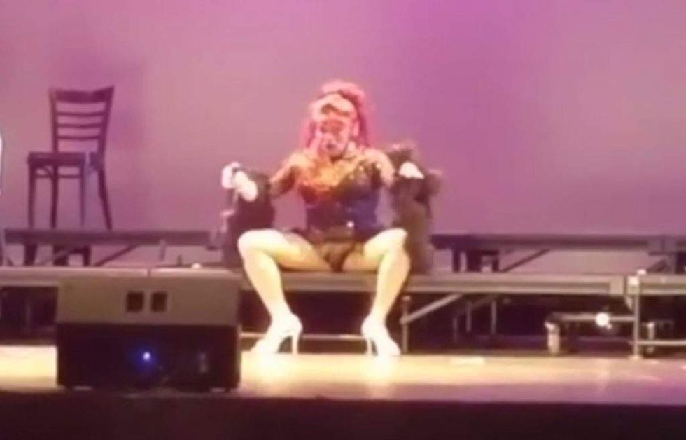 A drag queen gave a sexually charged performance during a student talent show last week — in front of kids reportedly as young as 5 years old. (Image source: New York Daily News video screenshot)