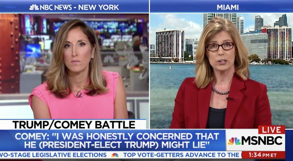 Florida International law professor Elizabeth Price Foley explains on MSNBC why President Donald Trump didn't commit "obstruction of justice" when firing FBI Director James Comey last month. (Image source: MSNBC screenshot)