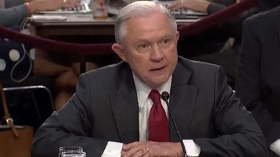 Attorney General Jeff Sessions battled Senator Ron Wyden (D-Oreg.) on whether he was stonewalling the committee hearing. Image Source: YouTube screenshot.
