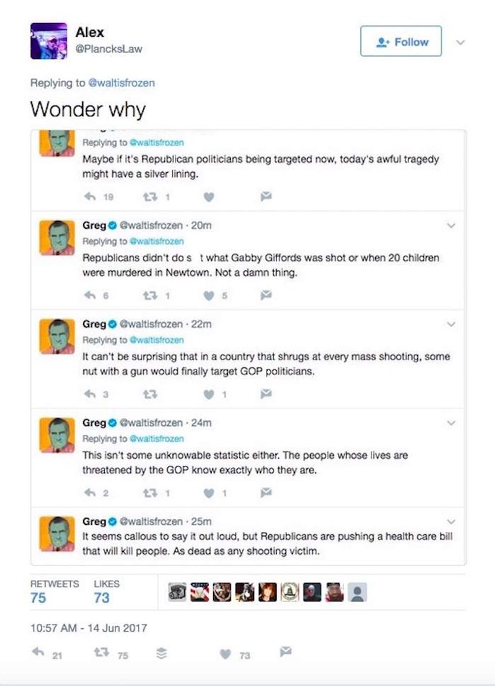 But as you might expect, some folks on social media posted decidedly vile reactions that ranged from Republicans-deserve-to-get shot to downright glee over the attack.
