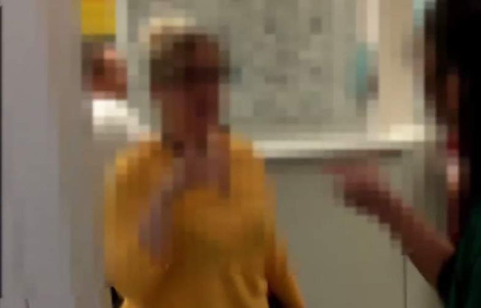 The mother replies that "you're brown" and adds, "You're attacking me because I'm white."