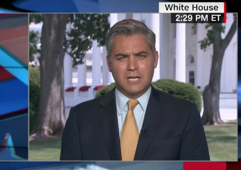 CNN's Jim Acosta is schooled on Twitter after he responds to President Donald Trump's controversial CNN takedown tweet. (Image source: YouTube screenshot)