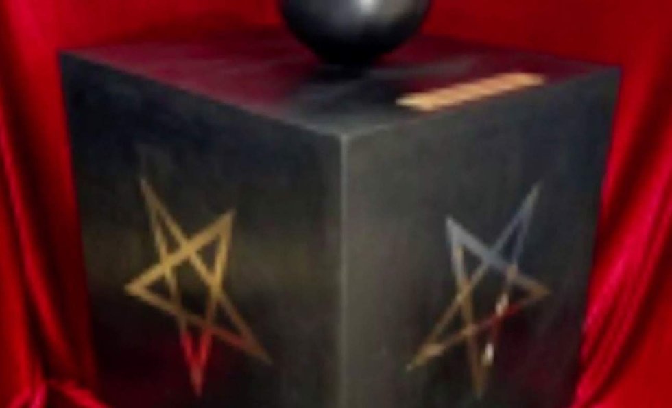 The Satanic Temple's monument — a black cube adorned with pentagrams and an upturned helmet — is slated to go up in Veterans Memorial Park in Belle Plaine, Minnesota, the station said.