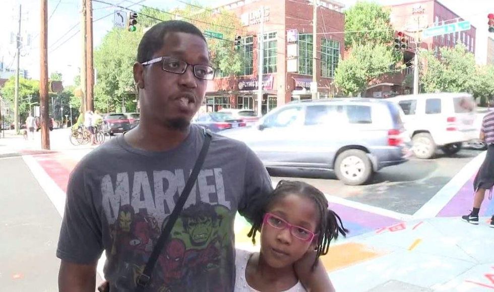 Four crosswalks at an intersection in a largely gay Atlanta neighborhood were just adorned with rainbow thermoplastic tiles, which cost taxpayers $196,000. (Image source: WXIA-TV video screenshot)