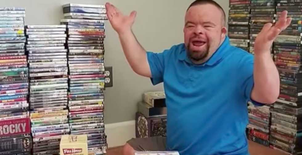 Mark Orsillo, a 34-year-old California man with Down syndrome, was overjoyed when strangers helped to replace his prized movie collection that had been obliterated in a wildfire. (Image Source: YouTube screenshot)