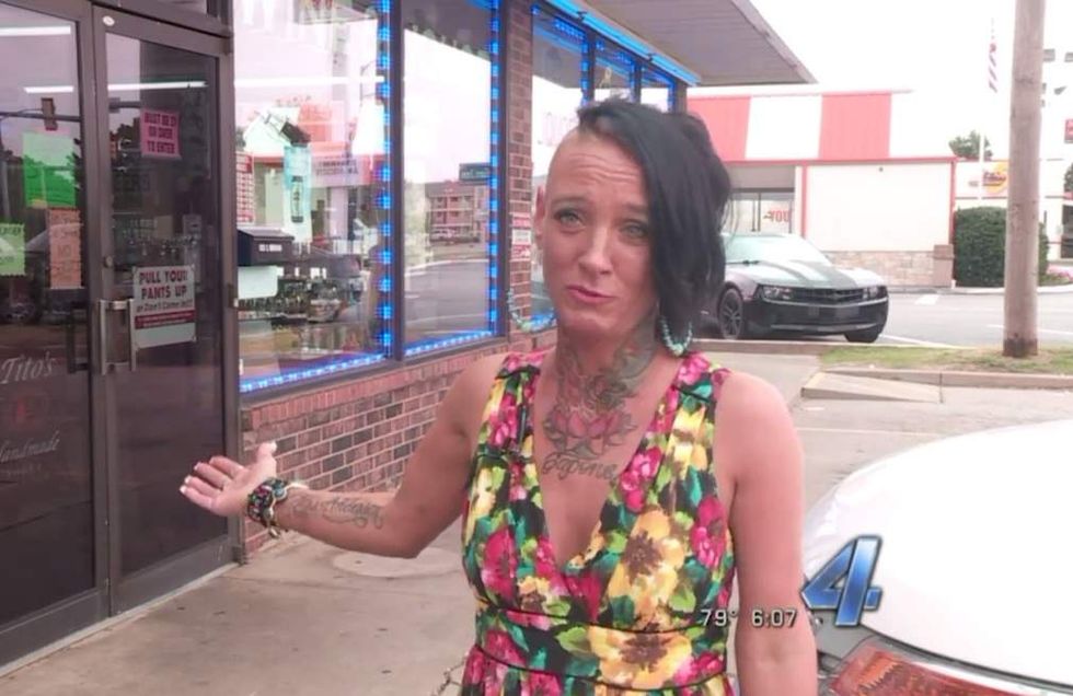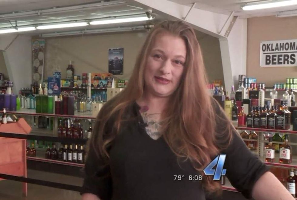 "I can see that if it was like a church," she told the station. "There are families there, you might have a problem with that, but this is a liquor store. I've seen worse at a liquor store."