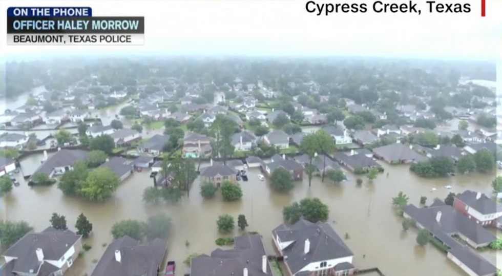 Pearland is a suburb to the south of Houston in Texas and was one of the hardest hit by flooding and damage from Hurricane Harvey. Some residents were still being evacuated and rescued well into Wednesday.