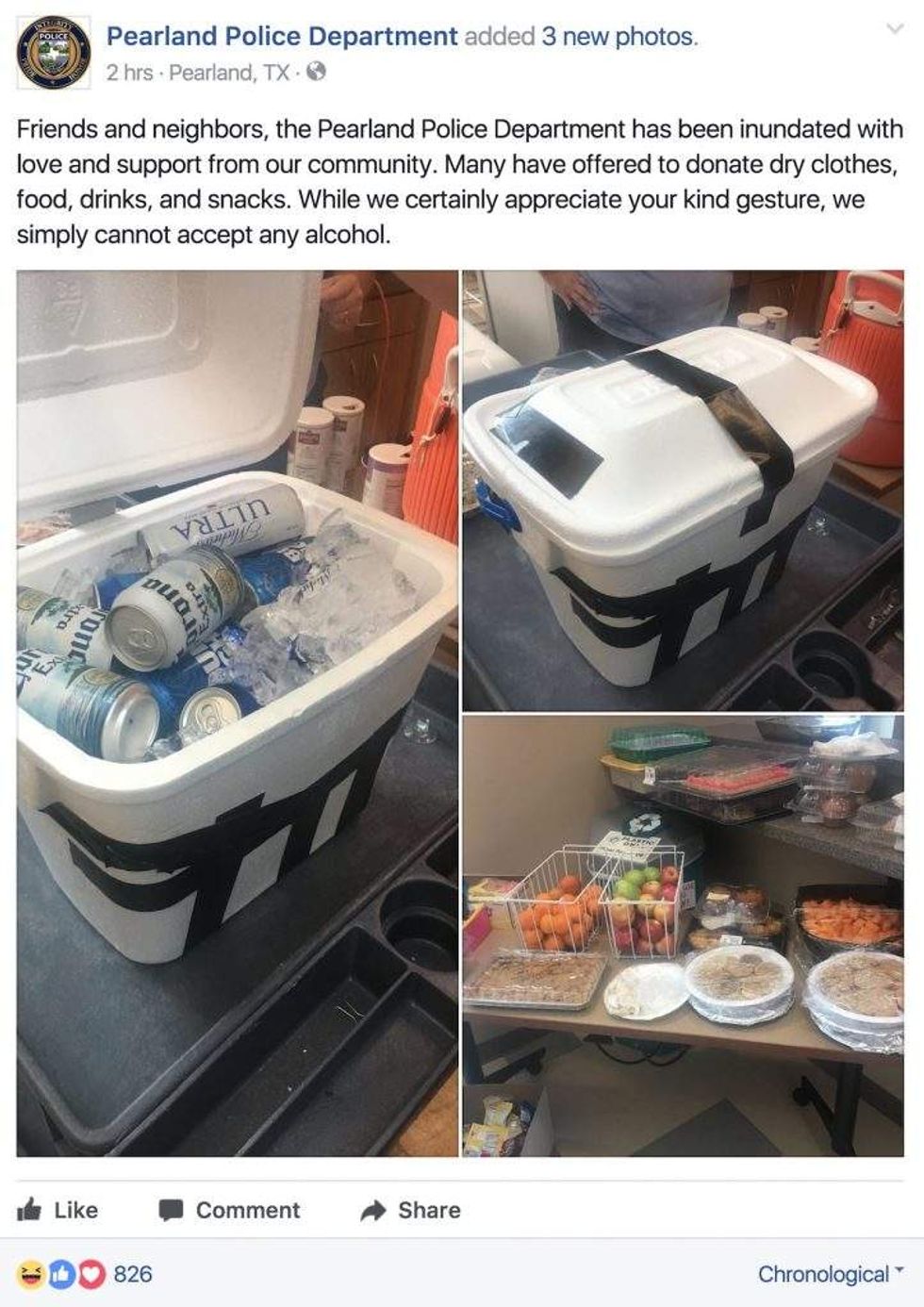 "Friends and neighbors, the Pearland Police Department has been inundated with love and support from our community," the post read.