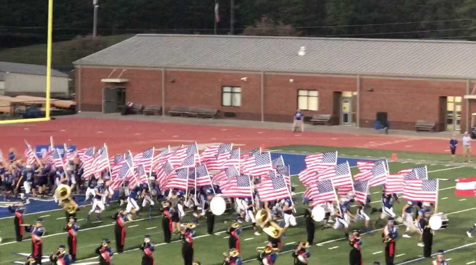 A Georgia high school football team made a huge statement Friday when each player took the field carrying an American flag. (Image source: via Facebook/Sonya Standridge screenshot)