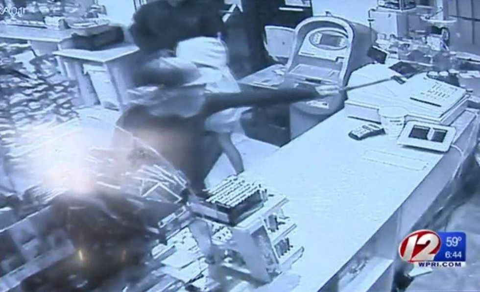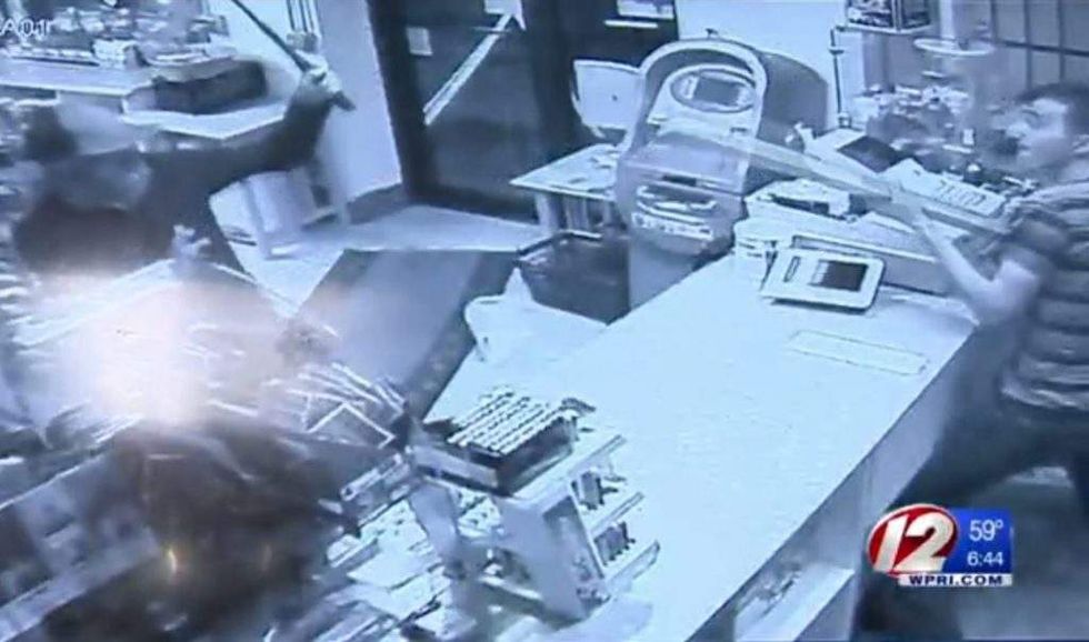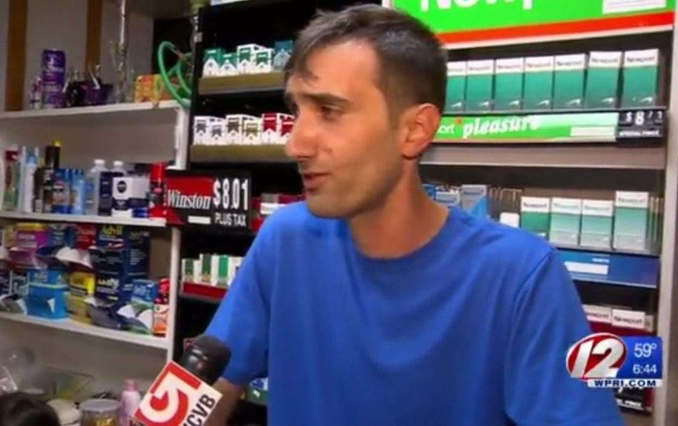 A hard-working immigrant store owner in Massachusetts fought off an armed robber with a two-by-four — and is living out American values. (Image source: WPRI-TV video screenshot)