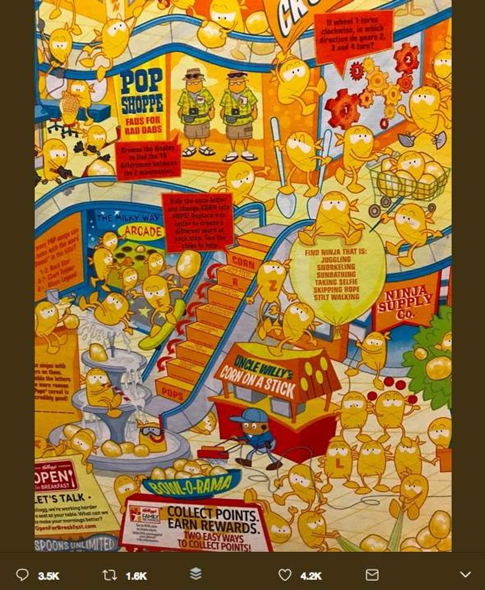 Kellogg's offered a speedy apology after a Twitter user pointed out that "the only brown corn pop" on the brand's Corn Pops cereal box is "the janitor" — and that such an image is "teaching kids racism."