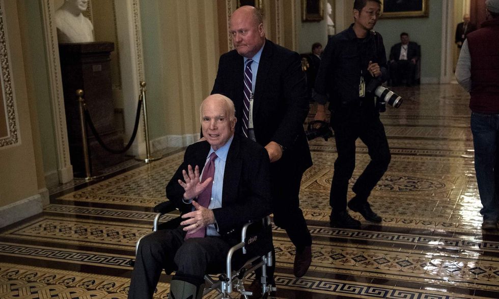 Arizona Sen. John McCain has returned home to Arizona to spend Christmas with his family. He will likely miss the tax vote this week. (Brendan Smialowski/AFP/Getty Images)