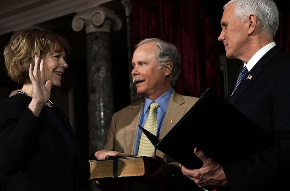 Vice President Mike Pence administered the oaths of office to the senators at about noon in the Old Senate Chambers on Capitol Hill in Washington, D.C.