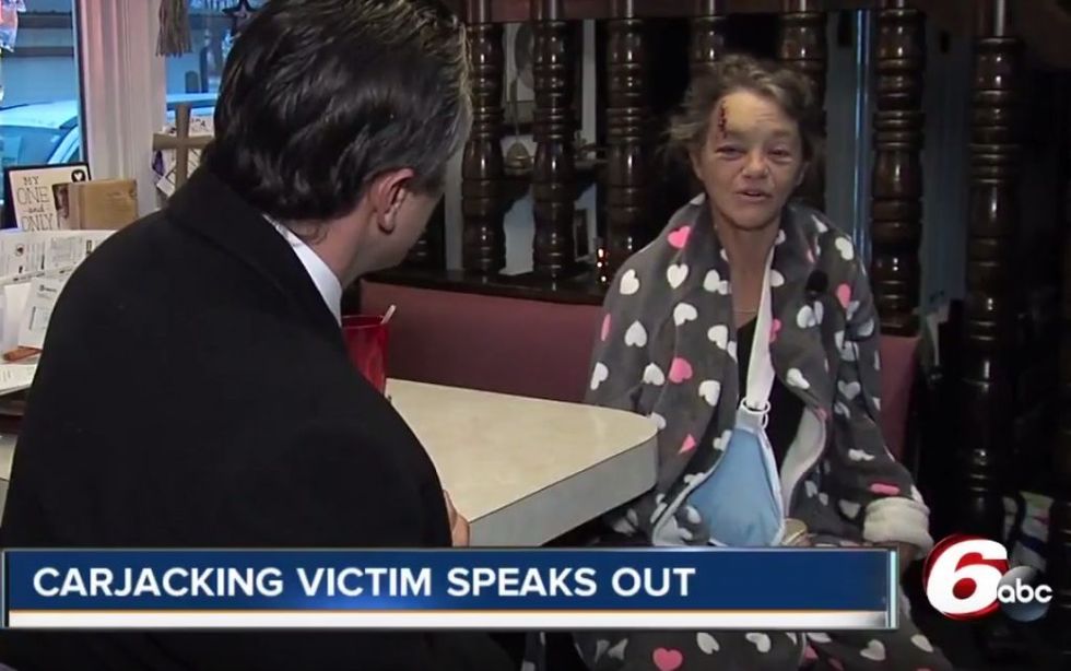 An Indiana woman got banged up quite a bit after fighting back against a carjacker on New Year's Day, just after driving her 88-year-old mother to the hospital. (Image source: YouTube screenshot)