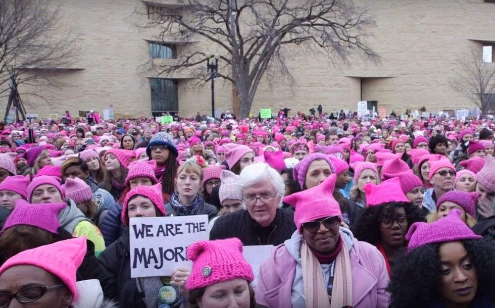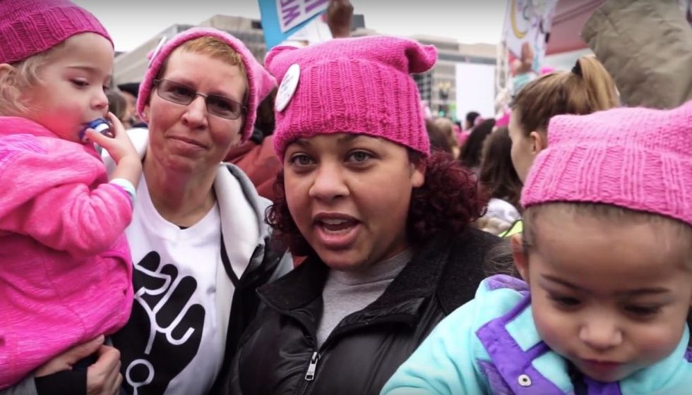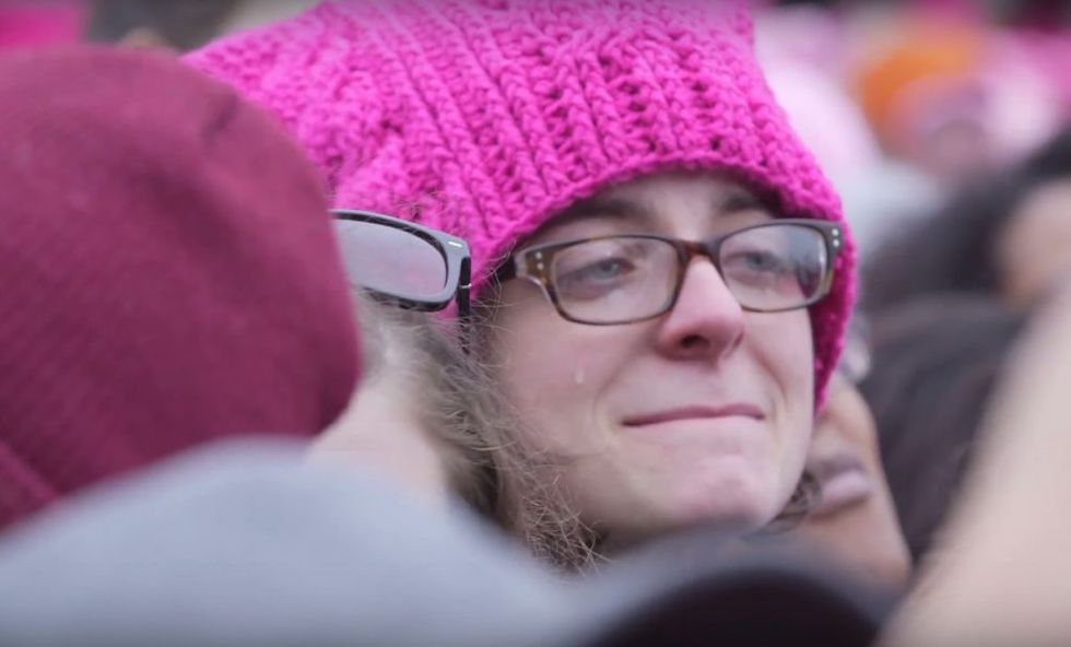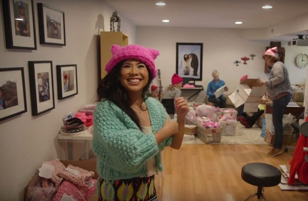 Remember those pink pussyhats that were the hit of the 2017 Women's March against Republican President Donald Trump? The caps on the outs because they're not inclusive. (Image source: YouTube screenshot)