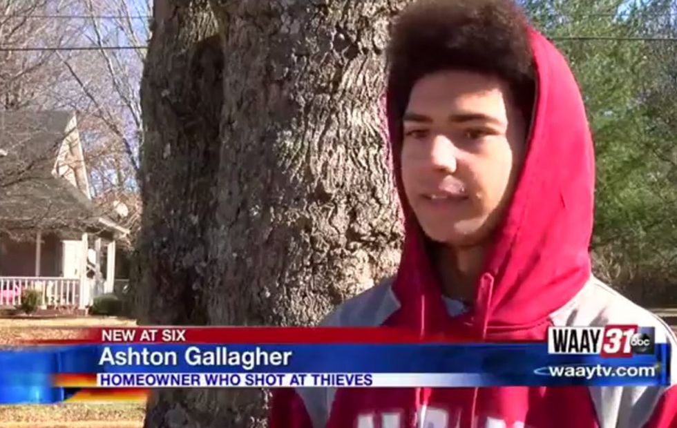 It was after midnight Wednesday when homeowner Ashton Gallagher was eating before getting ready for bed when he heard noises outside his Maysville, Alabama, home.