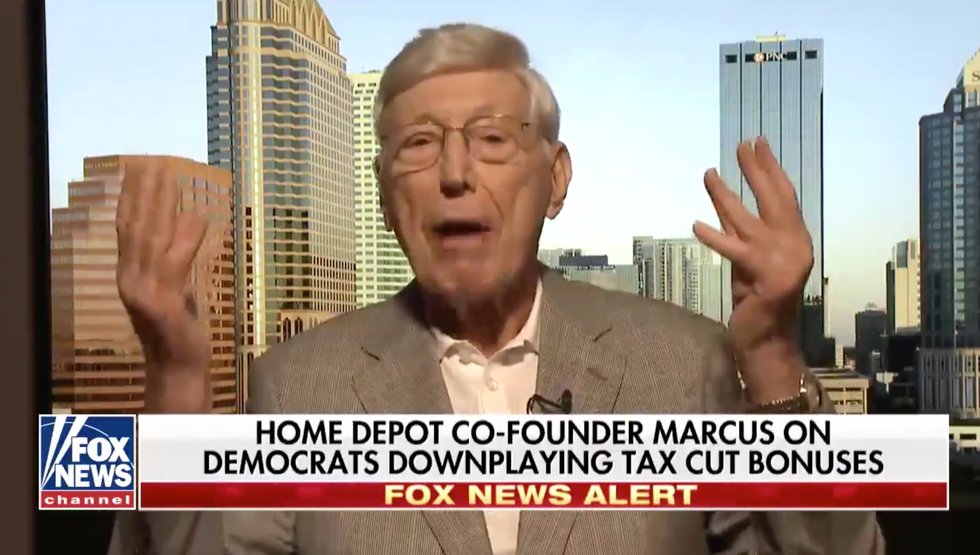 The co-founder of hardware giant Home Depot mocked Democrats and their posture toward the Republican tax reform bill in a near-seven minute rant on Fox News over the weekend.