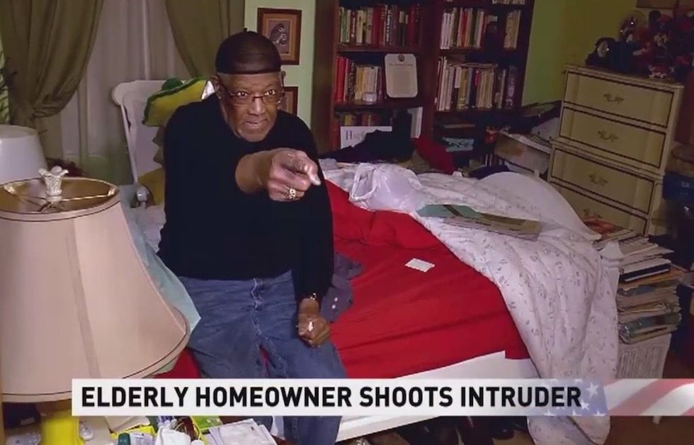 After an 83-year-old Maryland homeowner heard an intruder coming up the stairs toward his bedroom, he reached for "a friend under the pillow" — and didn't hesitate to use it. (Image source: WJLA-TV video screenshot)
