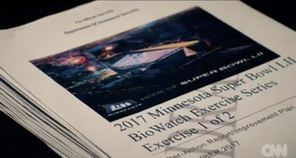 The DHS report, which was dated December 2017, purportedly mocked up a simulated biological warfare attack — anthrax, specifically — in preparation for the Super Bowl. The outlet reported that the documents also contained improvement recommendations for authorities' response to biological warfare attacks.