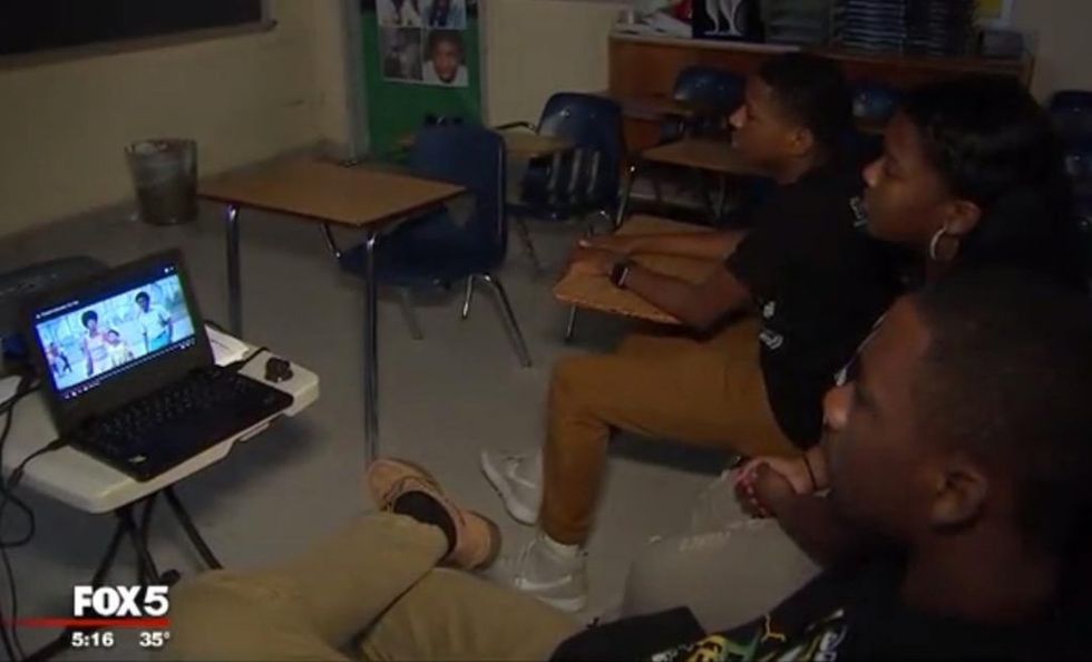 A "Black Lives Matter Week of Action" is underway at Prince George's County Schools in Maryland — and on Monday, the first day of activities, wearing all-black clothing was encouraged. (Image source: WTTG-TV video screenshot)