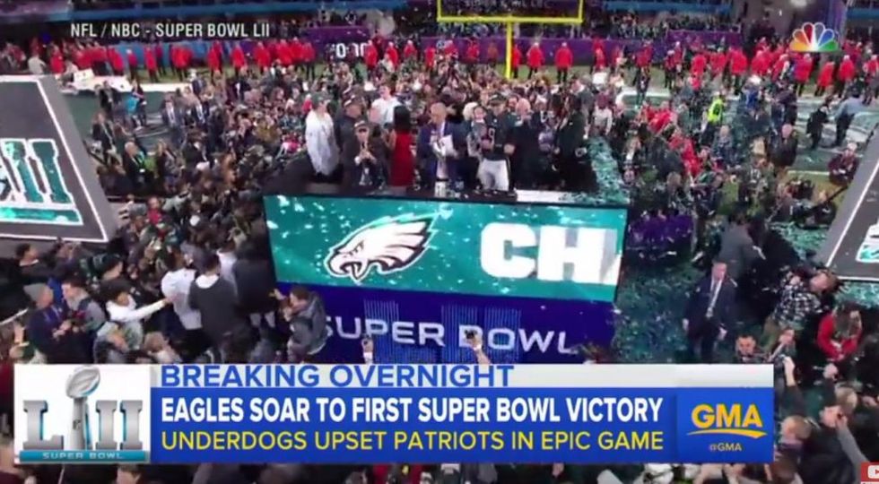 The injured superstar helped out on the sidelines as his backup Nick Foles led the Eagles to their first Super Bowl victory Sunday night against Tom Brady and the New England Patriots.