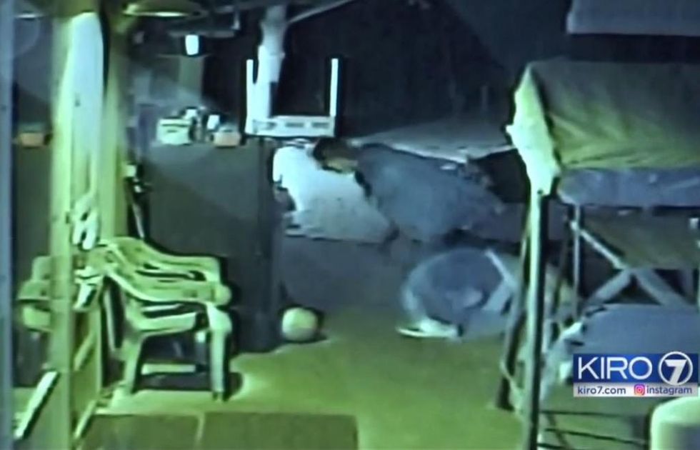 Dale Collins showed the station surveillance video of the incident at his home, which seems to show the same man trying to break into two cars. The man was seen walking into the camera frame covered in a blanket, which he left in a shed, KIRO said.