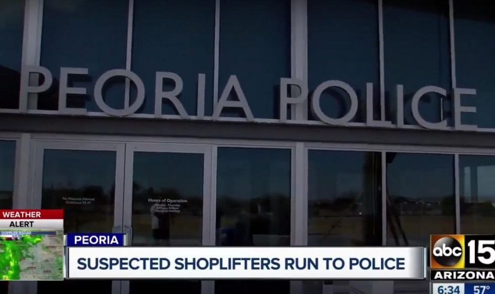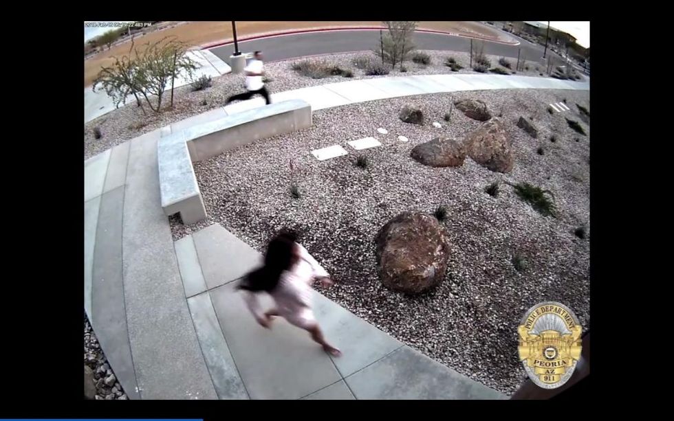 Turns out the couple — identified as 28-year-old Marwan Al Ebadi and 29-year-old Salma Hourieh — ran directly toward the front doors of the north precinct building of the Peoria Police Department, the paper reported.