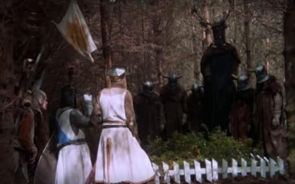 While you ponder that disturbing question, here's a classic look at the dangers of saying "Ne" to unsuspecting elderly women, shrubbers and Arthurian knights. Hopefully you, too, can pass through the dusky woods ... alive: