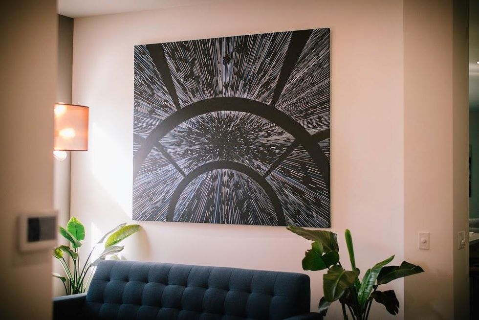 In the hallway of Rubin's house hangs a 6'x7'painting of the Millennium Falcon cockpit as it's catapulting into light speed. Looking at it gives your stomach a slight churn, pulls you into motion. It puts you in the pilot seat, staring at a blur of stars about to turn into streaks of white, aiming into a void. The world is changing so fast right now.