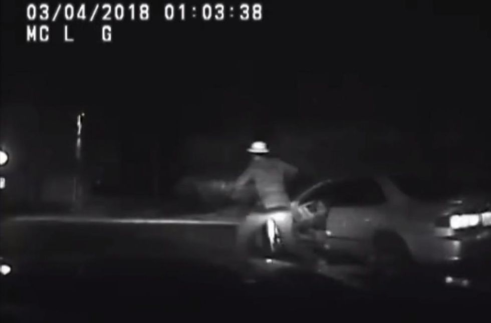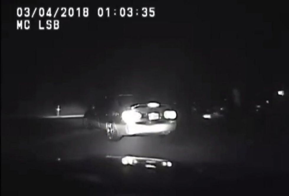 A Virginia driver on the run from police early Saturday morning managed to get hit by his own car. Yes, there's video. (Image source: Facebook video screenshot)