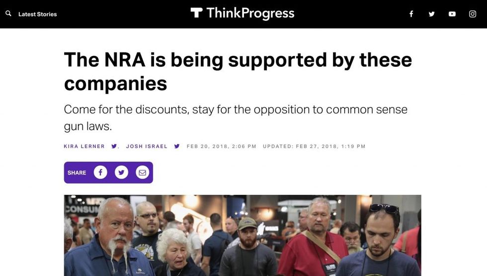 In just hours, the left organized and begin zeroing in on companies that do business with the NRA. ThinkProgress, a liberal news outlet a part of the Center for American Progress — an organization founded by Clinton ally John Podesta and funded in part by George Soros — published a list of companies that aligned themselves with the NRA, either directly or by offering discounted services to NRA members.