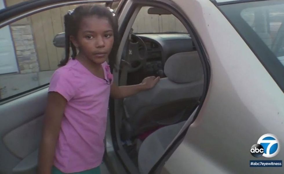 A quick-thinking 8-year-old girl thwarted her kidnapping as she and her 3-year-old brother headed toward the Mexican border in a stolen car Monday. (Image source: KABC-TV video screenshot)