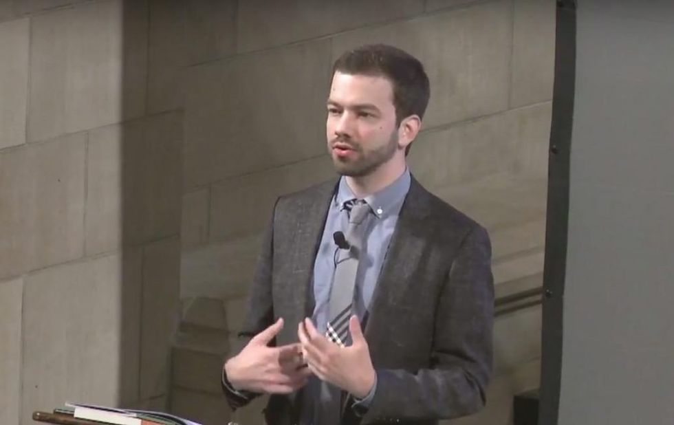 "Biblical scholar" Matthew Vines "reinterpreted" Scripture verses that typically condemn homosexuality in an LGBT-"affirming" reading of the Bible at Harvard University. (Image source: YouTube screenshot)