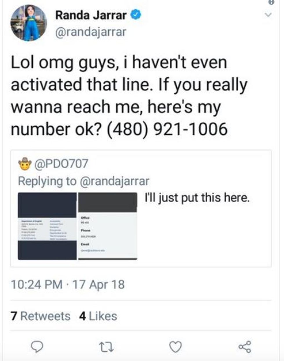 Among Jarrar's tweets was one that included a phone number she passed off as her own but was actually a number for Arizona State University's suicide hotline, the Bee reported.