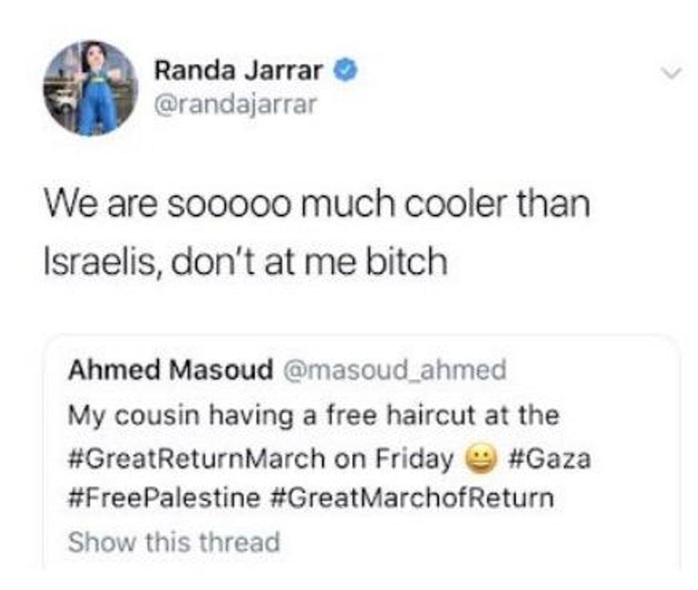 Jarrar was born in Chicago but grew up in Kuwait and Egypt, the Bee reported. The Daily Wire added that she is Muslim and a supporter of the Palestinian state — and noted in another tweet that "we are sooooo much cooler than Israelis, don't at me bitch."