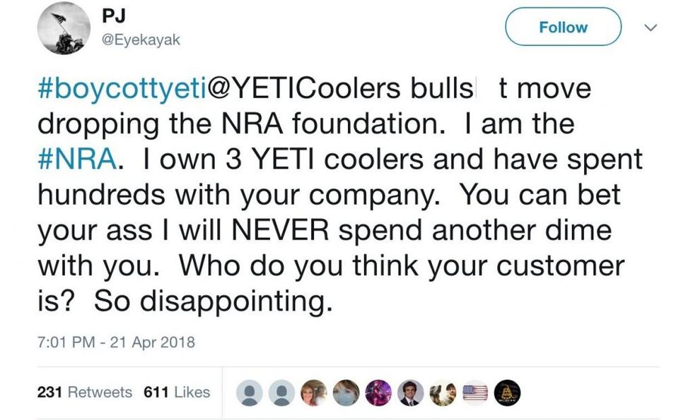 Other people vowed to never purchase YETI products again while encouraging the boycott: