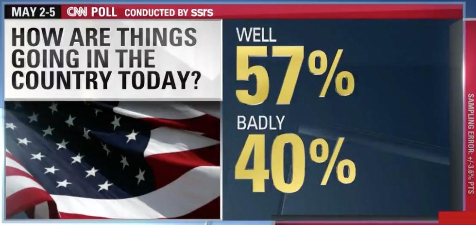 That's also an increase since February, when nearly half of Americans said the country was doing well (49 percent).