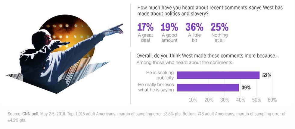 While more than half of Americans believe West made his comments simply to seek publicity, only 39 percent say that they think he believes in what he's saying.