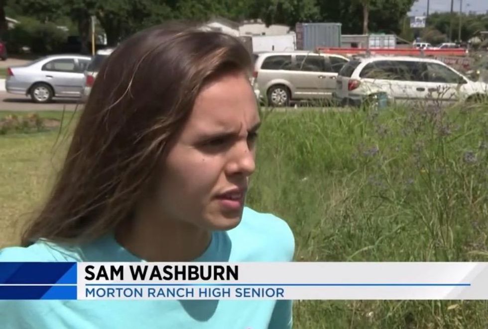 As video cameras rolled, Sam Washburn walked her girlfriend Shenta Knox toward a poster on a wall at Morton Ranch High School in Katy, Texas, that read "prom?" the station said.
