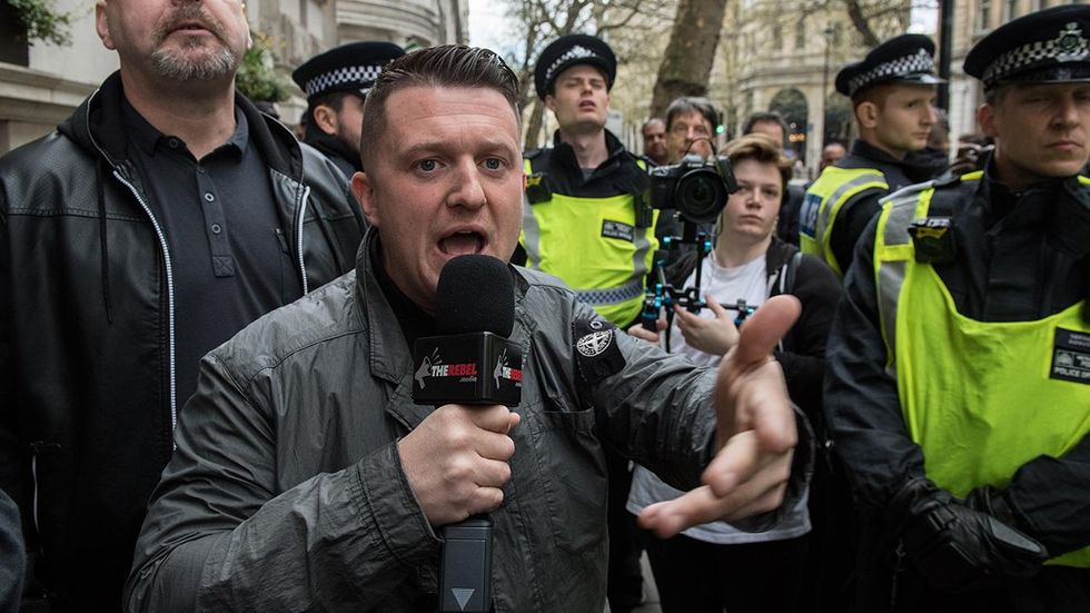 Activist and journalist Tommy Robinson is shown in this file photo during a protest against the Westminster terror attack in April 2017. (Chris J Ratcliffe/Getty Images)