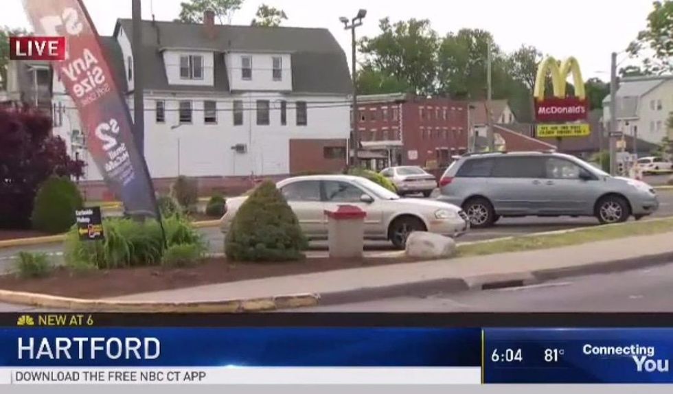 See, the kid was waiting for his dad to return from a McDonald's where the vehicle was parked, WVIT-TV reported. And when the boy realized a stranger was behind the wheel and driving off, he wasn't about to let the guy get away with it.