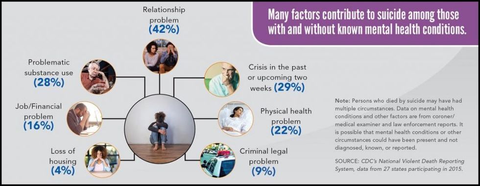Though mental health issues are commonly assumed to be the cause of suicide, there is rarely just a single factor, the CDC noted: