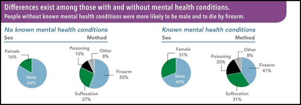 More than half — 54 percent — of those who died by suicide didn't have a known mental health problem. And there are several differences between those people with known mental conditions and those without who die by suicide, including: