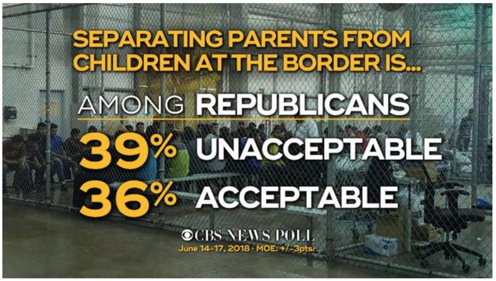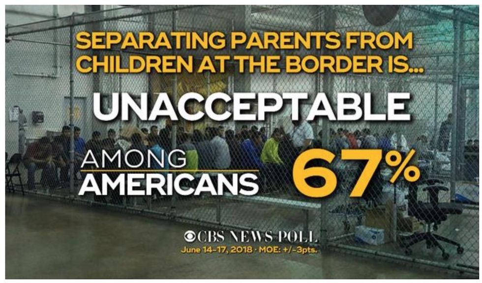 According to a new CBS News poll, more than two-thirds (67 percent) of Americans say the family separation policy is unacceptable, while only 17 percent said they approved of the practice.