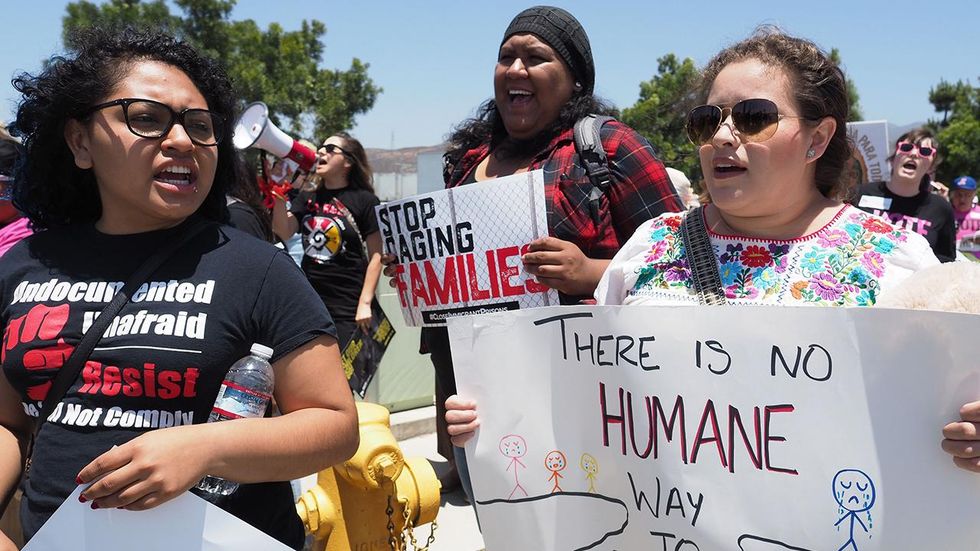 In Los Angeles, groups of protesters are camping outside an ICE facility and have blocked a driveway used by ICE vans, according to reports.