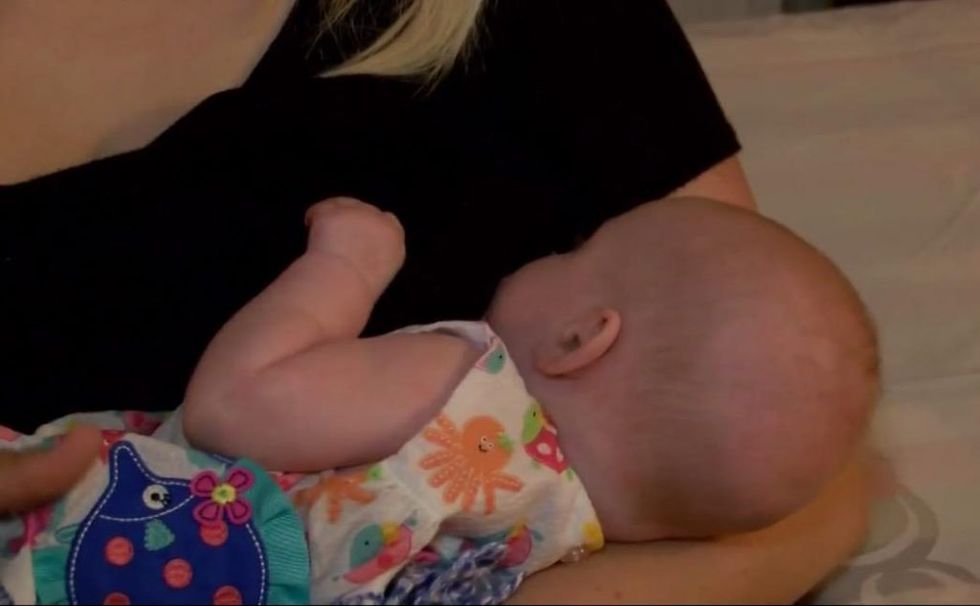 Breastfeeding mom Bobee Carroll rattled off a Louisiana state law to a Buffalo Wild Wings manager who brought her a blanket so she could "cover up." (Image source: KTAL-TV video screenshot)
