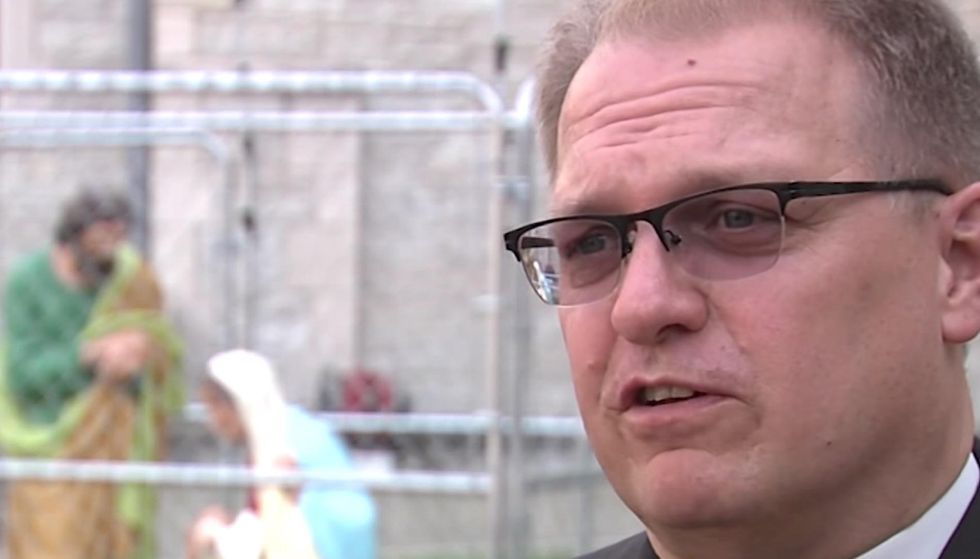 Reverent Steve Carlson of the Christ Church Cathedral in Indianapolis, Indiana, said they installed the controversial display of the holy family as a protest against President Donald Trump's policies. (Image Source: YouTube screenshot)