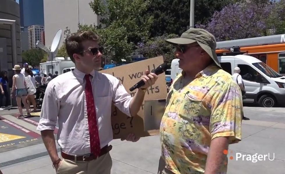 PragerU's Will Witt took to the streets of downtown Los Angeles to ask protesters with the recent "Families Belong Together: Freedom for Immigrants" rally one simple question: "Should there be open borders?" (Image source: Facebook video screenshot)