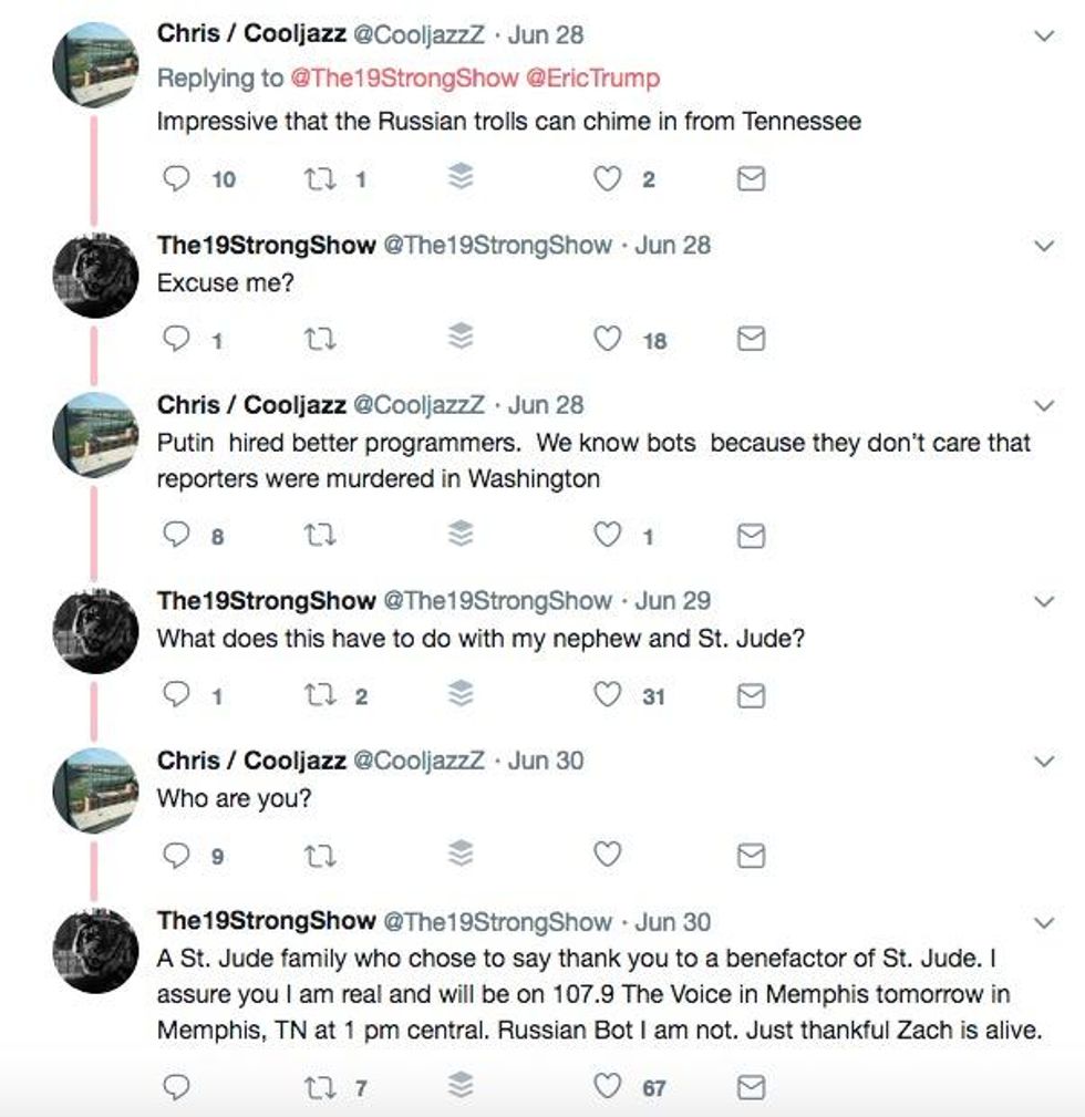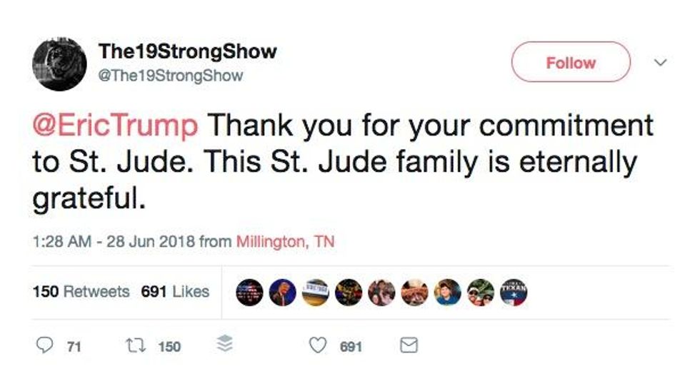 Sherrie Hopper said she was on a fundraising site late last month, noticed President Donald Trump's son contributed to St. Jude — reportedly more than $16 million in donations over the past decade — and tweeted a thank you to him through her radio show.
